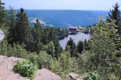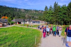 Mit strahlendem Sonnenschein und wohligen Temperaturen wurde die 42-köpfige Wandergruppe am Sonntag, 07. September vom Nordschwarzwald empfangen. Über die Schwarzwaldhochstrasse, Deutschlands ältester und bekannteste Panoramastrasse, wurde der Ruhestein auf der Passhöhe von 912m erreicht, benannt nach einem 2m³ großen Sandsteinfindling der den Reisenden zur Rast diente. Über der Passgrenze querend verlief einst die Grenze zwischen Großherzogtum Baden und Königreich Württemberg. Gemütlich gings bergauf in den Bannwald Wilder See der bereits vor über 100 Jahren entstand. Auf dem Weg zum Eutinggrab gabs kurze Blicke auf den 120m tiefer gelegenen Wildsee. Eine Gedenktafel macht auf Julius Euting 1839-1913 aufmerksam. Er war Orientforscher und großer Förderer des Schwarzwaldvereins. Seinem Wunsch gemäß wurde seine Urne auf dem Seekopf beigesetzt. Durch Hochmoor und Weidelandschaft gings weiter an der Darmstädter Hütte vorbei zum Seibelseckle. Schöne Ausblicke ins Achertal, die Rheinebene bis zu den Vogesen säumten den Weg. Nach kurzer Rast ging es weiter zum Mummelsee. Traumhaft gelegen ist er der größte Karsee des Schwarzwalds. Laut einer Sage geht der Name des Sees zurück auf Seerosen, im Volksmund Mummeln genannt. Steinig und felsig führte der Weg hinauf auf die 1164m hoch gelegenen Hornisgrinde. Der fantastische Ausblick entschädigte die Strapazen. Hier war noch bis 1999 militärisches Sperrgebiet. Ein einziger Bunker ist noch erhalten geblieben. Durch geschütztes Hochmoor mit seiner einzigartigen Flora und Fauna erreichten die Wanderer den Bismarckturm. Der anschließende Abstieg nach Unterstmatt erforderte nochmals die volle Aufmerksamkeit.