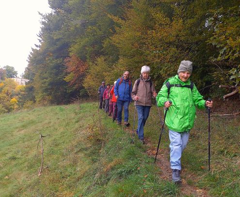 Zur Herbstwanderung der OG Pfullingen „Zu den warmen Quellen“ trafen sich am Sonntag, 19. Oktober bei bestem Wanderwetter 26 interessierte Wanderer*innen. Unter der Führung von Ulrich Rall und Gerhard Spardella begab sich die Gruppe in Fahrgemeinschaften nach Untermarchtal zum Ausgangspunkt der Tour. Entlang der Donau und am Aussichtspunkt Kreuzfels vorbei führte der Weg nach Algershofen zu den warmen Quellen am südwestlichen Ortsrand. Das artesisch aufsteigende Wasser kommt aus ca. 170 m Tiefe, tritt in mehreren Spalten aus mit einer konstanten Temperatur von 16°C und bildet einen langen und mehrere Meter breiten Quellteich. Als kleiner Bach fließt das Wasser nach ca. 1 km in die Donau. In früheren Zeiten wurde die Quelle als Heilbad genutzt. Nach einer kurzen Pause wurde die Tour fortgesetzt zum nächsten Ziel Munderkingen, alemannischen Ursprungs und 792 erstmals erwähnt. Durch die historische Altstadt und den ehemaligen Stadtgraben gelangten die Wanderer zu einem sonnigen Pausenplatz direkt an der Donau. Nach dieser malerischen Rast wanderte die Gruppe entlang der Donau bis zum Sportgelände und einem Donau-Altarm. Diesem folgend, über Wiesen und Felder und dem südlichen Stadtrand gelangten die Wanderer wiederum an die Donau. Der großen Schleife folgend, an Gütelhofen vorbei, erreichte man wieder den Ausgangspunkt in Untermarchtal. Mit einer gemütlichen Abschlusseinkehr im Gasthaus Adler/Meidelstetten endete dieser erlebnisreiche Wandertag. Thomas Schwaner dankte den beiden Wanderführern für die gelungene Wanderung. (V)