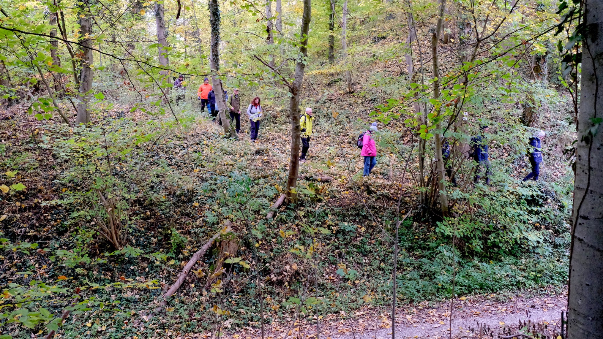 Zur Herbstwanderung der OG Pfullingen „Zu den warmen Quellen“ trafen sich am Sonntag, 19. Oktober bei bestem Wanderwetter 26 interessierte Wanderer*innen. Unter der Führung von Ulrich Rall und Gerhard Spardella begab sich die Gruppe in Fahrgemeinschaften nach Untermarchtal zum Ausgangspunkt der Tour. Entlang der Donau und am Aussichtspunkt Kreuzfels vorbei führte der Weg nach Algershofen zu den warmen Quellen am südwestlichen Ortsrand. Das artesisch aufsteigende Wasser kommt aus ca. 170 m Tiefe, tritt in mehreren Spalten aus mit einer konstanten Temperatur von 16°C und bildet einen langen und mehrere Meter breiten Quellteich. Als kleiner Bach fließt das Wasser nach ca. 1 km in die Donau. In früheren Zeiten wurde die Quelle als Heilbad genutzt. Nach einer kurzen Pause wurde die Tour fortgesetzt zum nächsten Ziel Munderkingen, alemannischen Ursprungs und 792 erstmals erwähnt. Durch die historische Altstadt und den ehemaligen Stadtgraben gelangten die Wanderer zu einem sonnigen Pausenplatz direkt an der Donau. Nach dieser malerischen Rast wanderte die Gruppe entlang der Donau bis zum Sportgelände und einem Donau-Altarm. Diesem folgend, über Wiesen und Felder und dem südlichen Stadtrand gelangten die Wanderer wiederum an die Donau. Der großen Schleife folgend, an Gütelhofen vorbei, erreichte man wieder den Ausgangspunkt in Untermarchtal. Mit einer gemütlichen Abschlusseinkehr im Gasthaus Adler/Meidelstetten endete dieser erlebnisreiche Wandertag. Thomas Schwaner dankte den beiden Wanderführern für die gelungene Wanderung. (V)