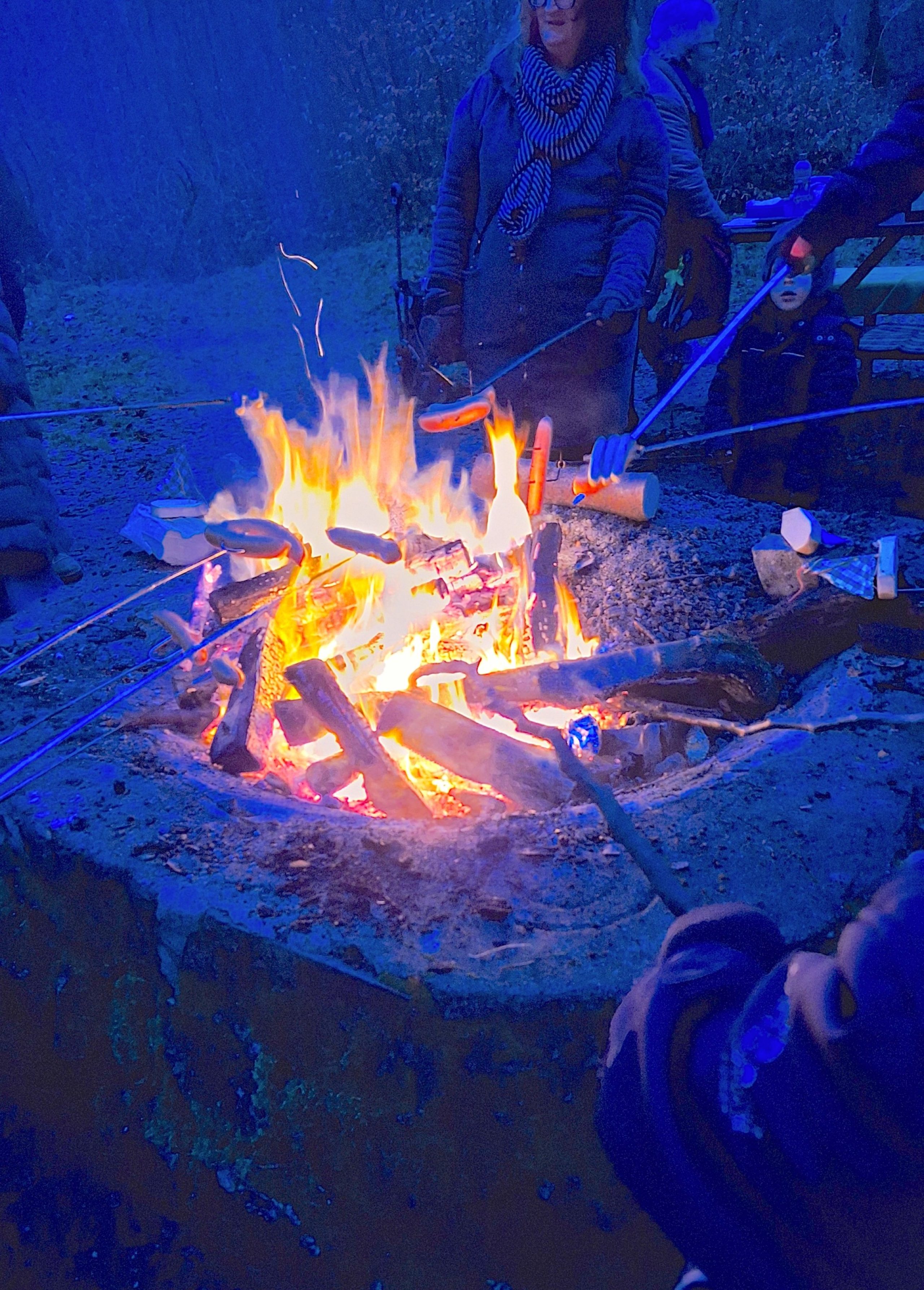 Nach der Stärkung am Feuer wurde es doch sehr kalt. Mit Stirn-und Taschenlampen wurde der Rückweg angetreten, der vom Vollmond begleitet wurde.