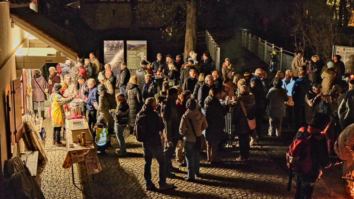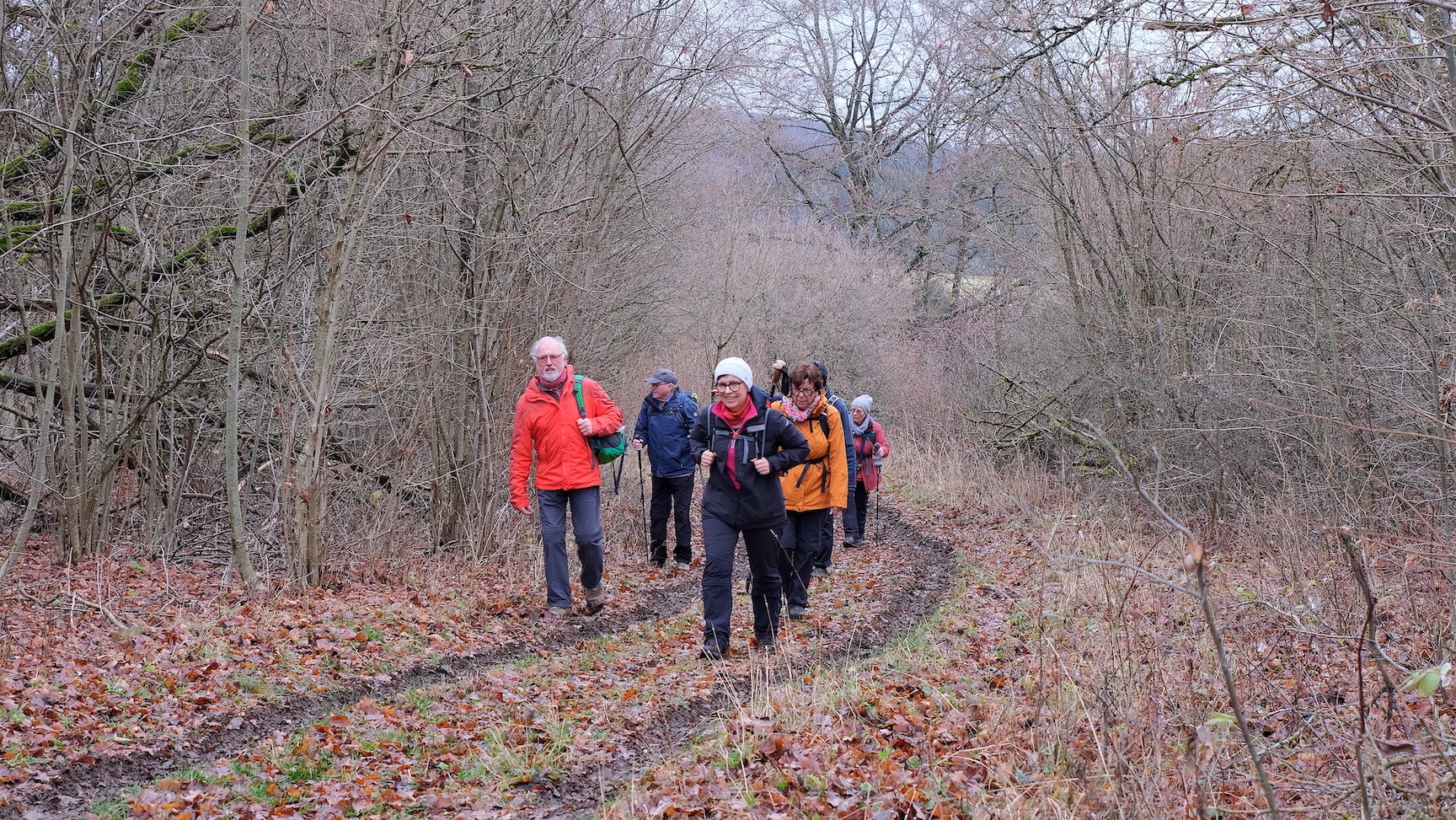 Es ist geschafft, das Wanderjahr 2025 ist vollbracht. 22 Wanderlustige begaben sich am 7. Dezember auf den 1. Teil des Sonnenbühler Grenzgängerweges. Nach dem Start in Erpfingen wurde als erstes die Erpfquelle in Augenschein genommen. Von diesem kleinen romantischen Kleinod fließt die Erpf durch den Kurgarten und später in die Lauchert. Weiter am Weg lag das Ostereiermuseum. Das Museum feierte 2018 25-jähriges Jubiläum. Es beherbergt über 1000 Ausstellungsstücke in einzigartigen Farben,Formen und Techniken. Während der Öffnungszeiten finden regelmäßig Sonderausstellungen, Küntslermärkte und weitere Veranstaltungen statt. Auf dem Bärenhöhlenweg, gespickt mit schönen Blicken auf die Umgebung, gelangte die Gruppe auf den Sonnenbühler Grenzgängerweg und im Anschluß durch herbstliche Waldwege an die Bärenhöhle. Erst 1949 wurde sie entdeckt und für Besucher geöffnet. Auf einer Länge von 292 Metern erschließt sich eine vielfältige Ur- und Unterwelt. Die Temperatur beträgt ganzjährig 8-10 Grad. Bestens versorgt mit Giselas Bredla und Utes Schnaps gings gemütlich weiter durch die albtypische Kuppenlandschaft, Laubwäldern und sanft hügeligen Wiesen und Feldern. Die Kaffeepause wurde im Rosencamping eingelegt. Im weiteren Verlauf gings vorbei am ersten verwitterten Grenzstein. Die Grenzsteine trennten rund 200 Jahre lang die Gebiete Württemberg/Hohenzollern und Preußen. Auch heute trennt sie die Landkreise Reutlingen und Zollernalb. Nach der historischen Grenze ist auch eine religiöse Trennlinie vorhanden. Evangelisch-Württemberg, katholisch-Hohenzollern. Allsbald wurde die Sonnenmatte erreicht. Das Feriendorf, Baubeginn 1964, besteht aus 50 Ferienhäusern, 5 rollstuhl-gerechten Häusern sowie einem Appartmenthaus mit 10 Appartments. Im Wettbewerb „Servicequalität-Baden Württemberg“ ging sie als Sieger hervor. Für Familienferien ohne Barrieren wurde sie mit Bronze ausgezeichnet. Schweren Herzens wurde hier wegen einsetztender Dämmerung die Wanderung abgekürzt. Die Teilnehmer wurden jedoch bei der Abschlußeinkehr im Sportheim in Undingen bestens entschädigt. Doris Sautter bedankte sich im Namen der Gruppe bei den Wanderführern Thomas und Sylvia Schwaner für die abwechslungsreiche Tour.
